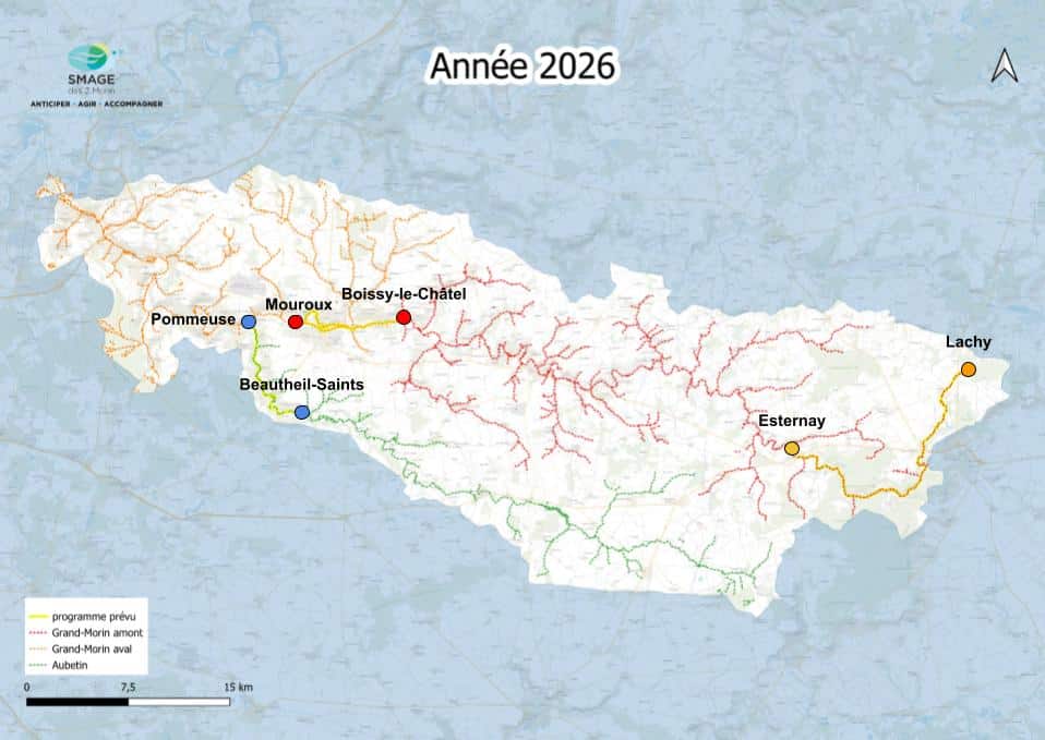 Le SMAGE des 2 Morin suit avec attention le déroulement des travaux. En tant que propriétaire riverain ou exploitant, vous pouvez vous rapprocher du technicien de rivière au : 07 72 50 58 33.